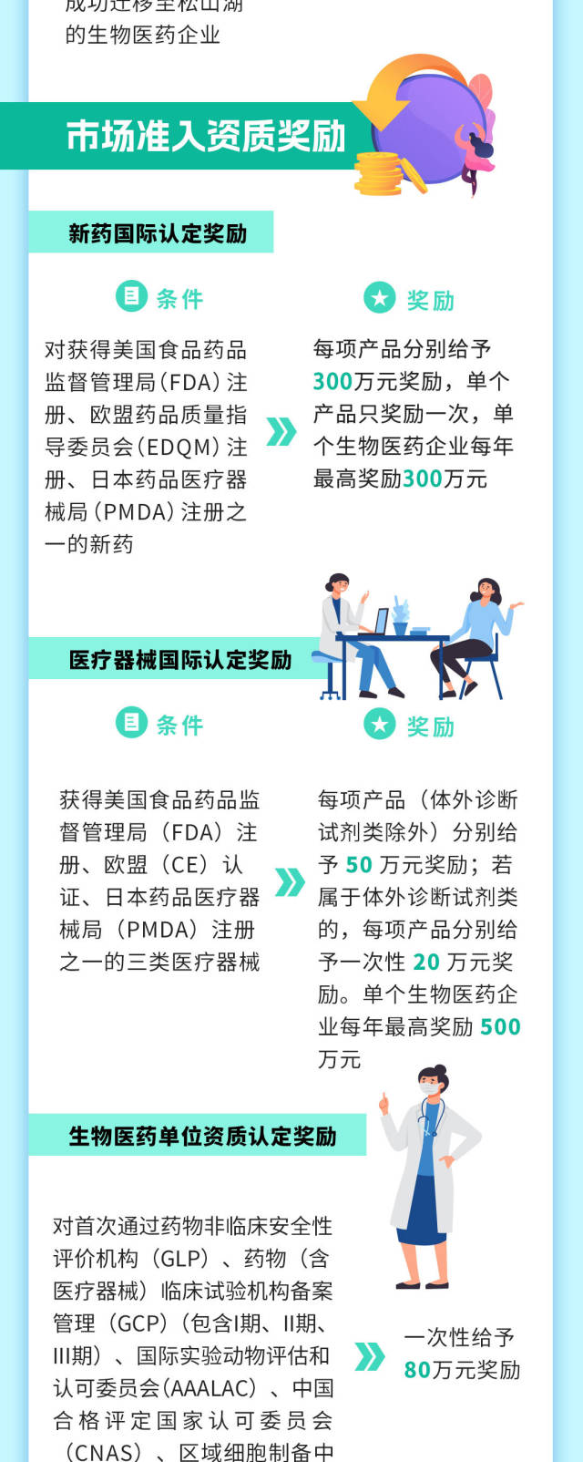 近日,松山湖印發(fā)推動生物醫(yī)藥產(chǎn)業(yè)高質(zhì)量發(fā)展若幹措施的實施細(xì)則(試行),該政策適用範(fàn)圍包括但不限於創(chuàng)新藥、高端醫(yī)療器械(體外診斷、高值醫(yī)用耗材、醫(yī)學(xué)影像)、醫(yī)療機(jī)器人、核醫(yī)學(xué)等領(lǐng)域。關(guān)於政策詳細(xì)的獎勵補(bǔ)貼細(xì)則如下↓↓