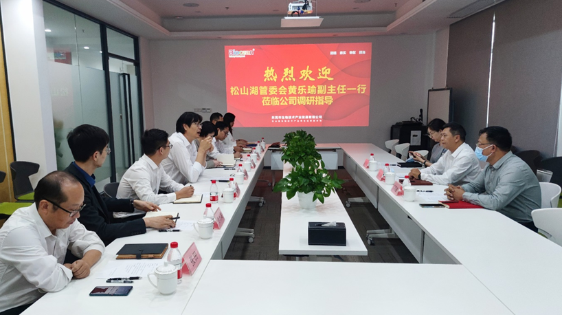 近日,松山湖黨工委委員、管委會副主任黃樂瑜一行蒞臨生技公司調研並指導相關工作,我司宋濤董事長和公司高管一起熱忱接待並座談交流。東莞市財政局松山湖分局和松山湖國資中心相關負責人共同參加本次調研?! ?.